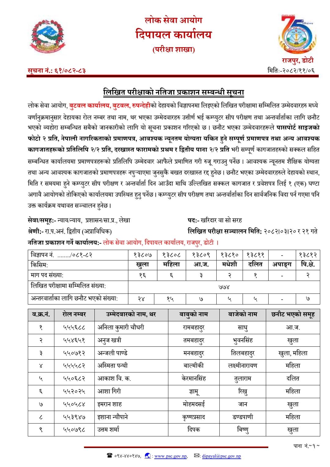 खरिदार लिखित परीक्षाको नतिजा सार्वजनिक