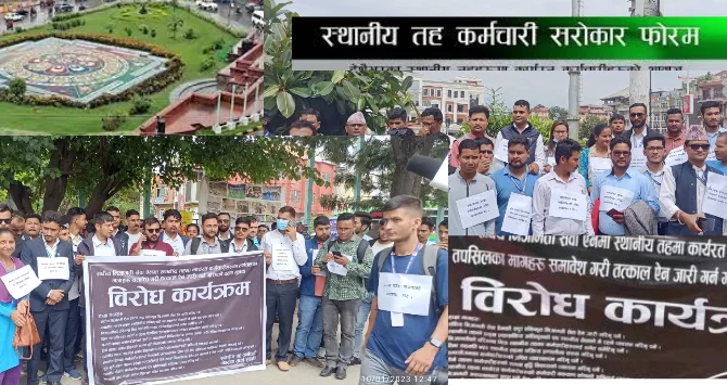 स्थानीय तहका कर्मचारीहरुको काठमाडौ केन्द्रित आन्दोलन सुरु भएको छ कर्मचारी हरुले एकीकृत निजामती सेवा ऎन लगाएतका विभिन्न माग राखेर माईतिघरमा प्लेकार्ड सहित प्रदर्शन गरेका हुन । हेर्नुहोस तस्बिरहरू ...