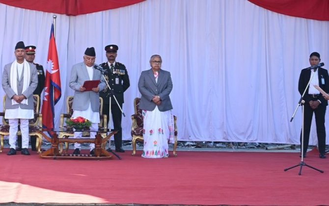 शपथ ग्रहण समारोहमा उपराष्ट्रपति रामसहाय प्रसाद यादव, प्रधानमन्त्री सुशीला कार्की, सभामुख देवराज घिमिरे लगायत उपस्थित थिए ।