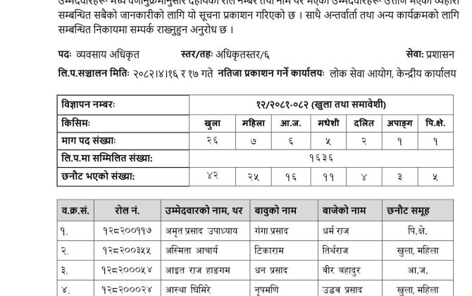 उत्तीर्ण भएकालाई अन्तर्वार्ता तथा बाँकी प्रक्रियाका लागि समयमा नै आयोग वा सम्बन्धित निकायसँग सम्पर्कमा रहन सूचित गरिएको छ ।