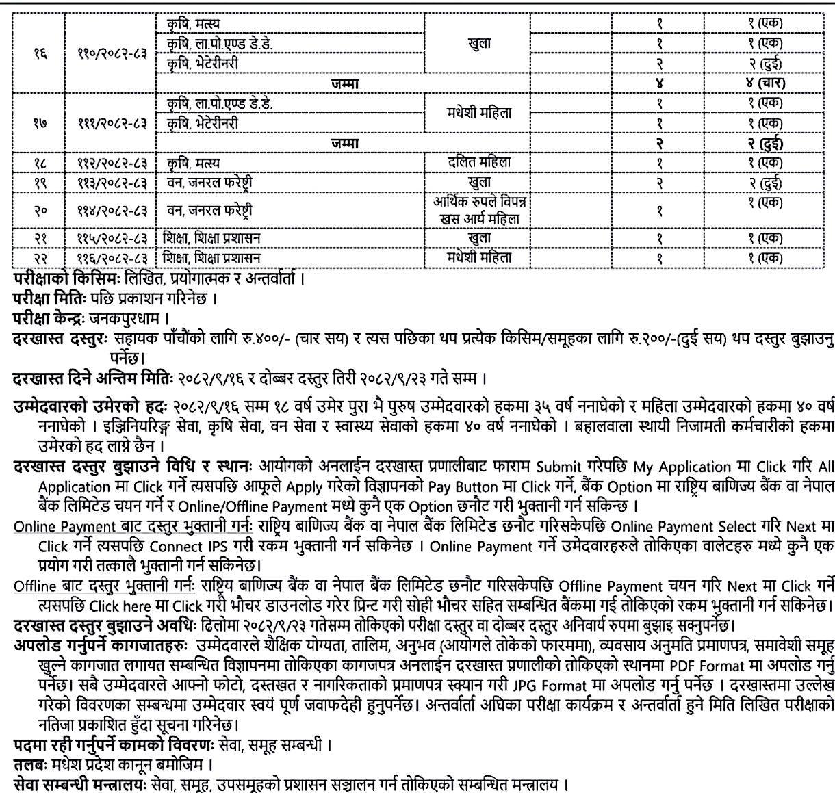 आयोगले दरखास्तका लागि न्यूनतम योग्यता पुगेका सबैलाई समयमै आवेदन दिन आग्रह गरेको छ ।