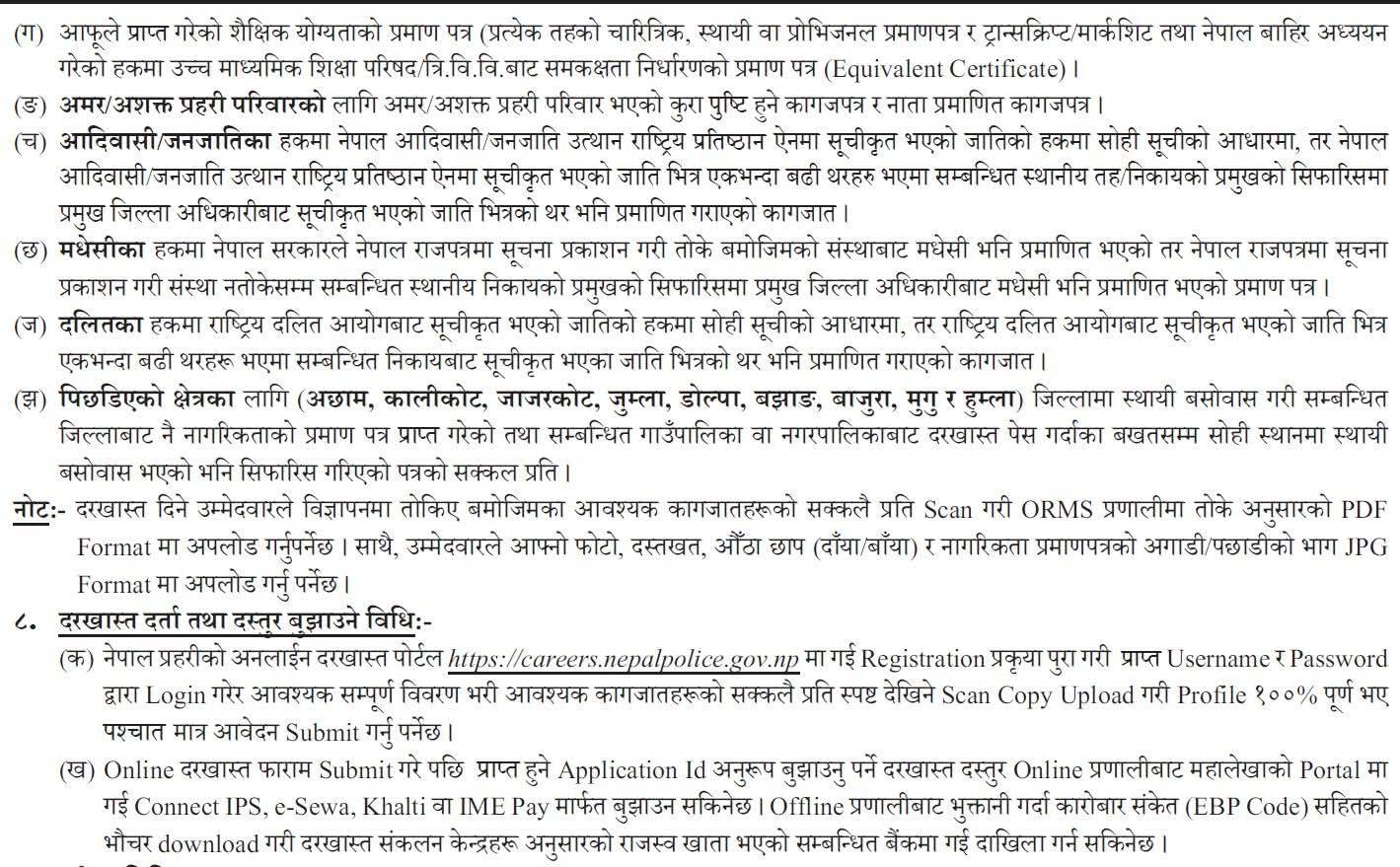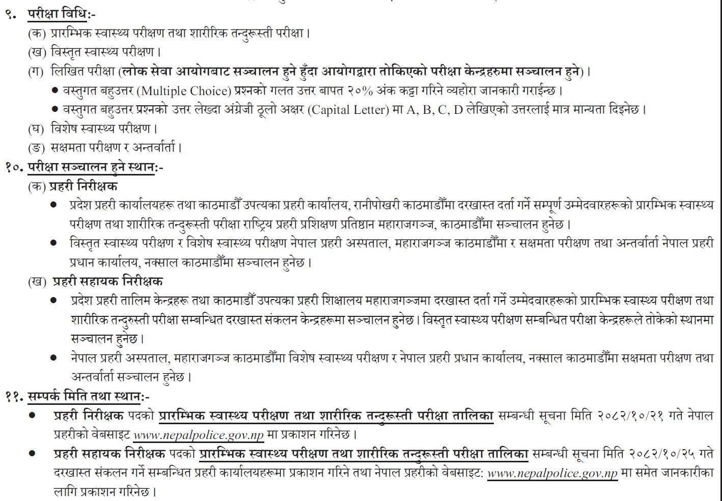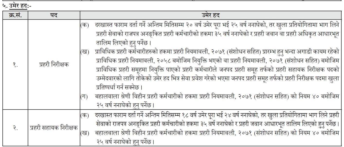 दरखास्त दिने म्याद प्रहरी निरीक्षकका लागि २०८२ असोज ८ गतेसम्म र प्रहरी सहायक निरीक्षकका लागि २०८२ असोज ८ गतेसम्म तोकिएको छ ।