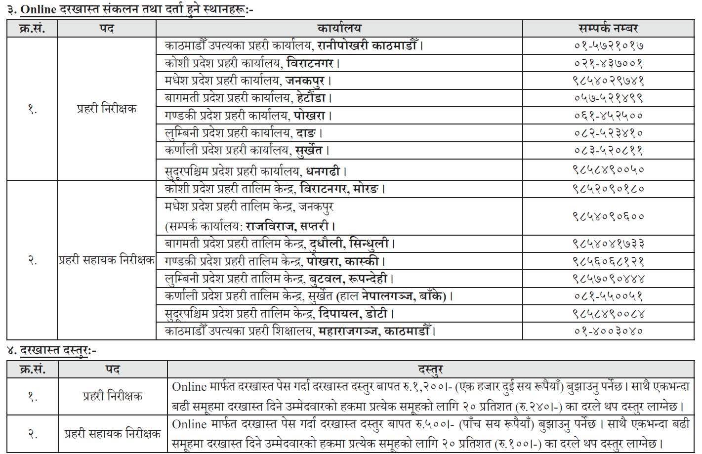 नेपाल प्रहरी प्रधान कार्यालयले जनपद प्रहरी समूहअन्तर्गत नयाँ भर्ना खुला गरेको छ । प्रहरी निरीक्षक र प्रहरी सहायक निरीक्षक पदका लागि खुला तथा समावेशी प्रतियोगिताबाट योग्य नेपाली नागरिकहरूबाट अनलाइन दरखास्त आह्वान गरिएको हो ।