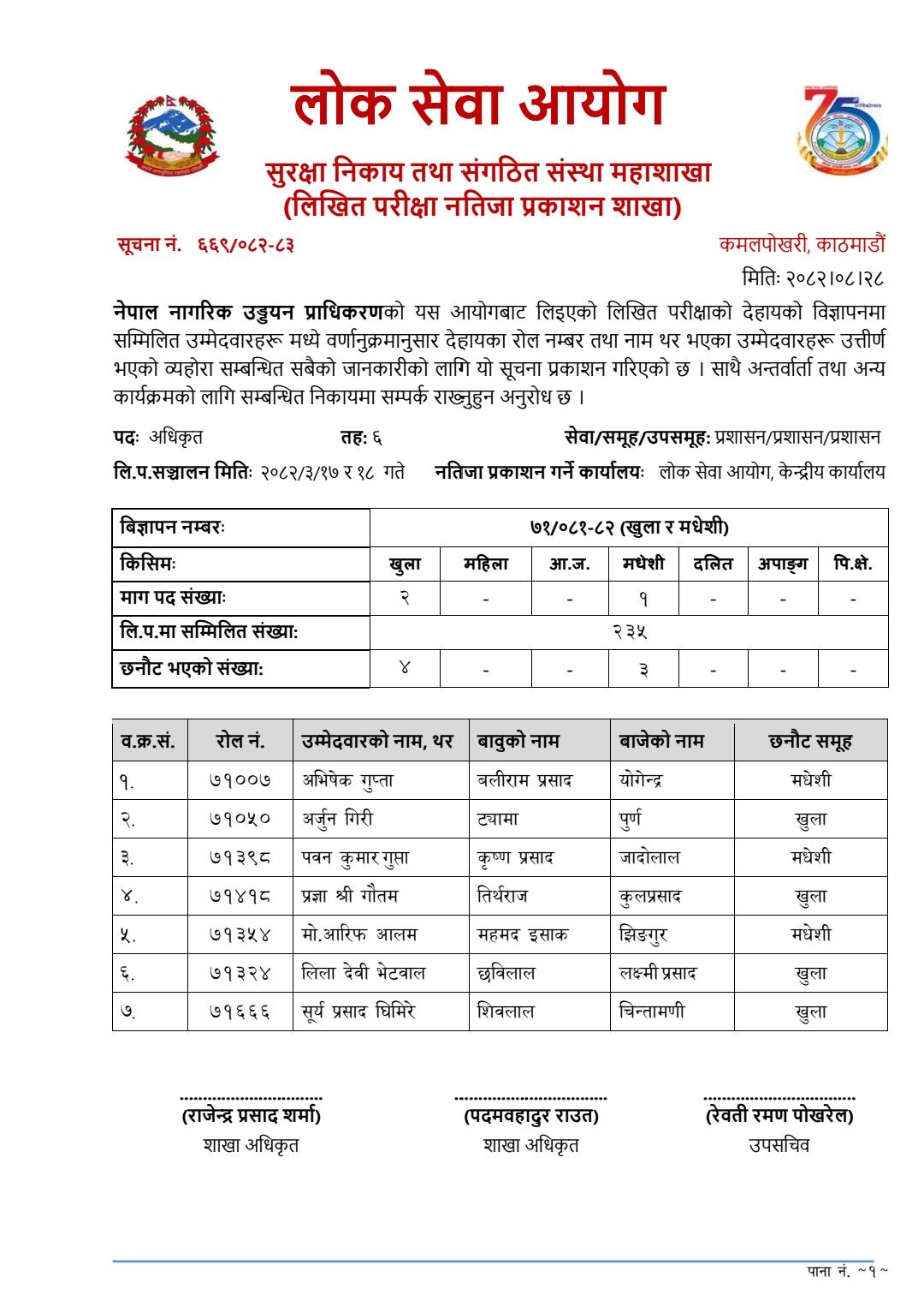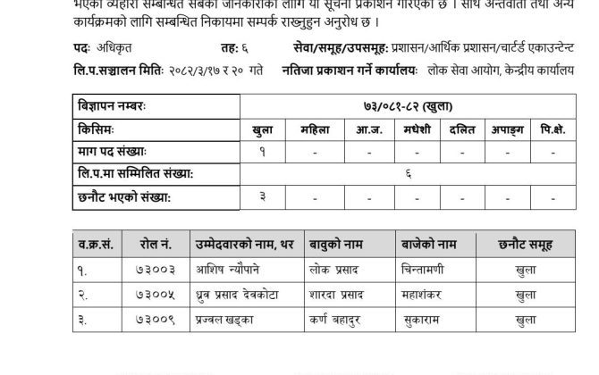नेपाल नागरिक उड्डयन प्राधिकरणको प्रशासन सेवा ६ र ५ तहका लिखित परीक्षाको नतिजा प्रकाशन भएको छ ।