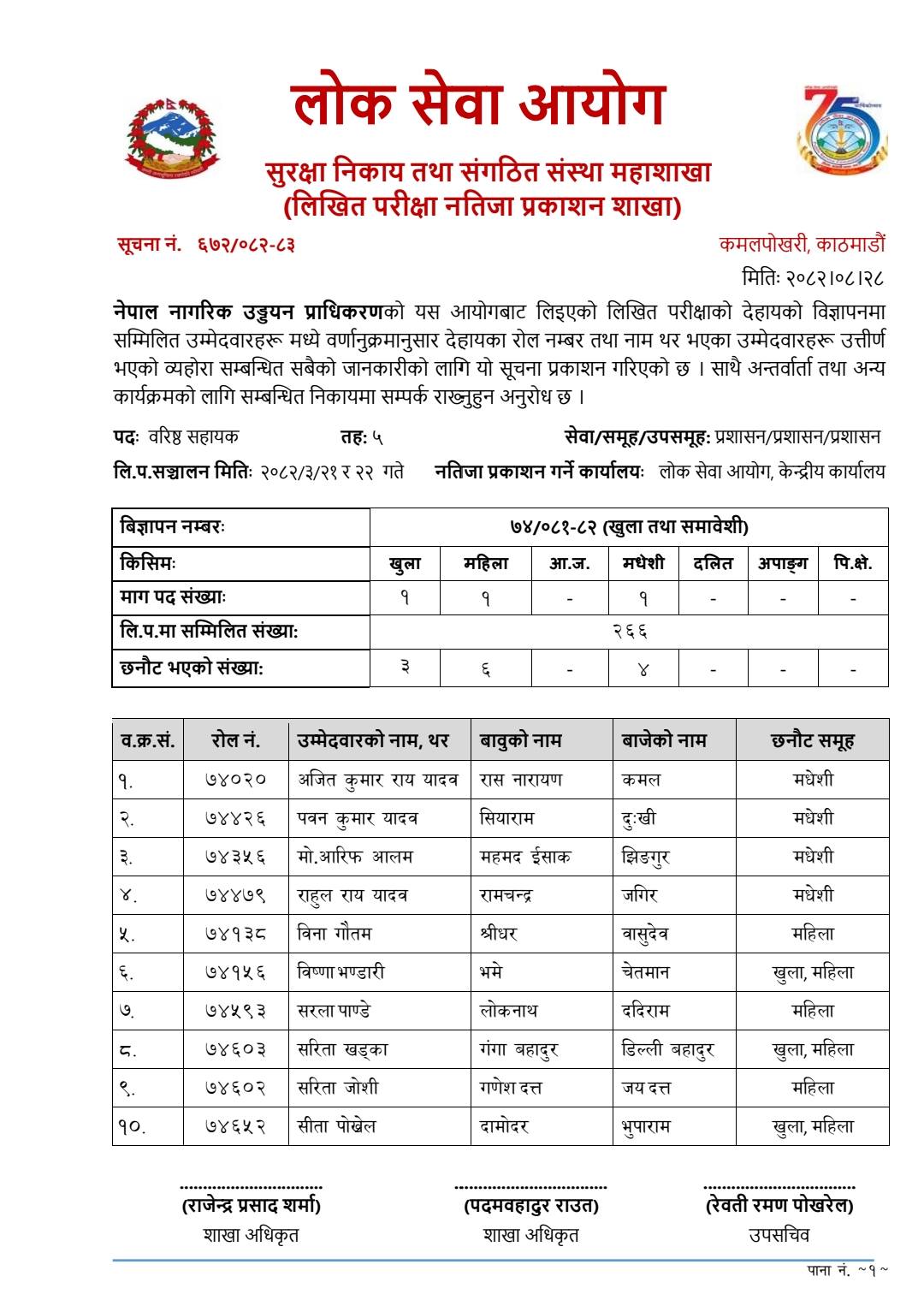 न्याय सेवा आयोगले १० जना सहायक न्यायाधिवक्तालाई उच्च तहमा बढुवा सिफारिस (सूचीसहित)