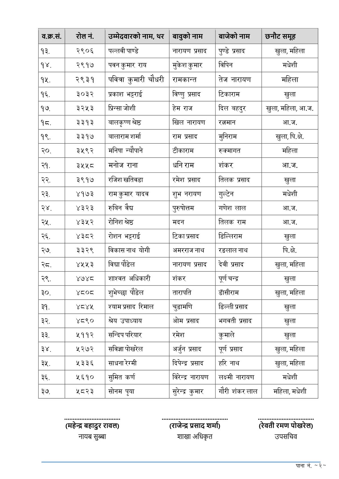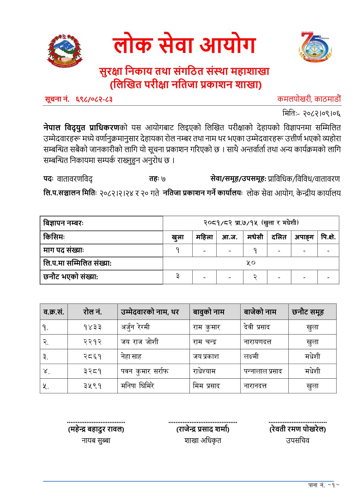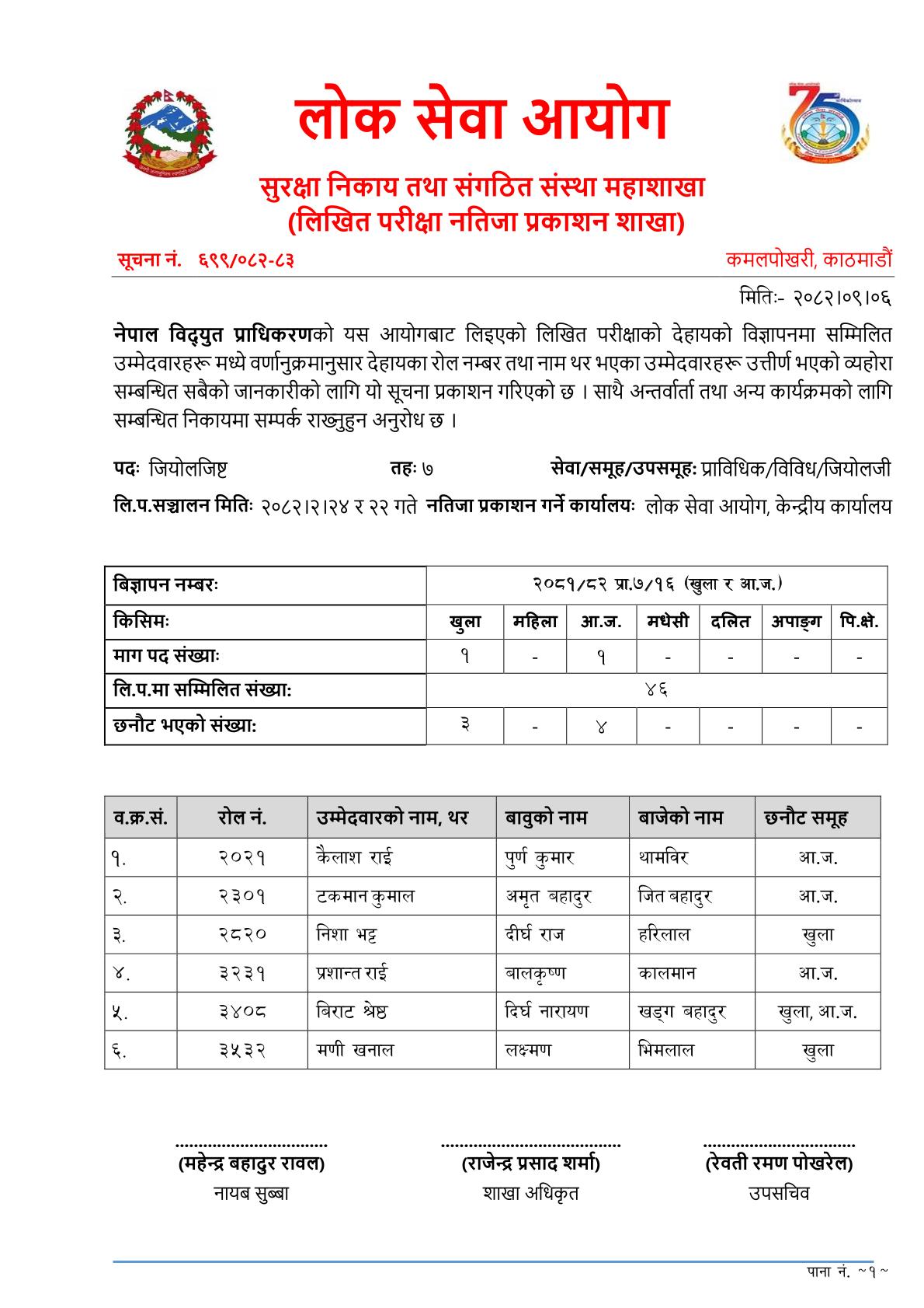 लोक सेवा आयोगद्वारा प्रकाशित सूचनाअनुसार सफल उम्मेदवारहरू आगामी चरणअन्तर्गत अन्तरवार्ता तथा अन्य प्रक्रियाका लागि सम्बन्धित निकायमा सम्पर्क गर्न आग्रह गरिएको छ ।