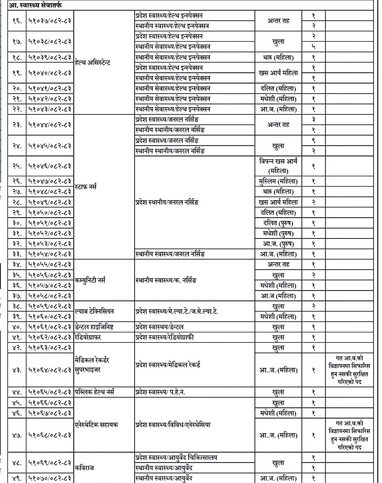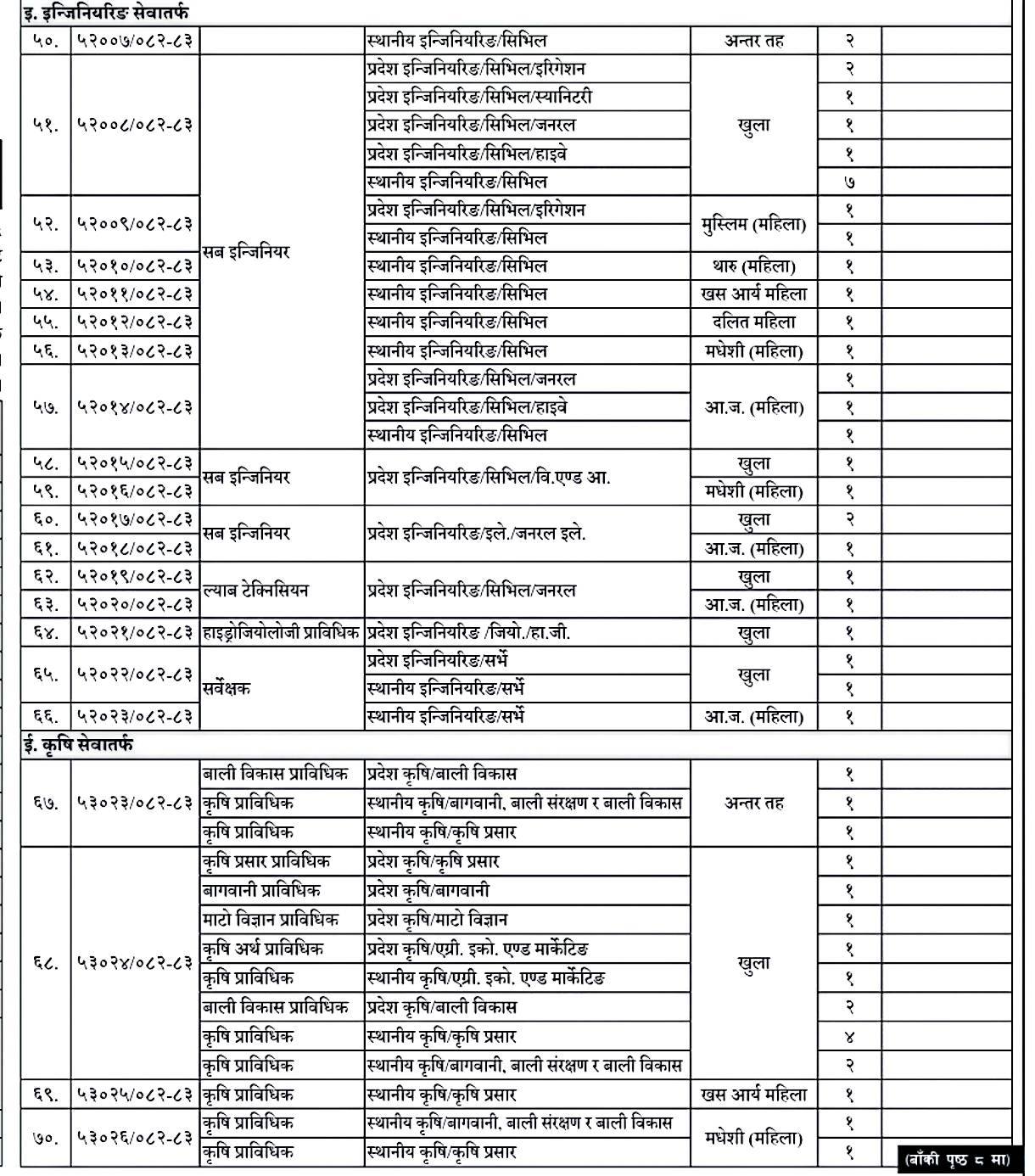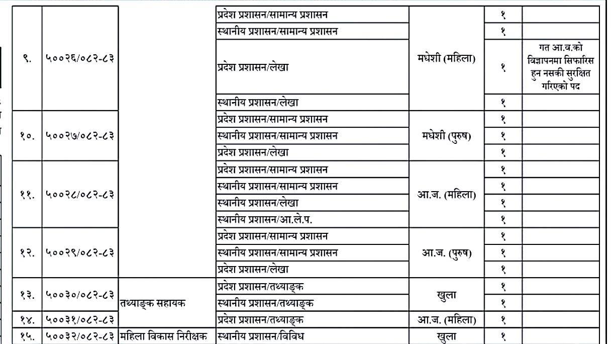 विज्ञापनअनुसार प्रदेश र स्थानीय तहका प्रशासन, लेखा, राजस्व, कानूनलगायत विभिन्न समूहका पदहरूमा माग गरिएको छ । इच्छुक तथा योग्यता पुगेका उम्मेदवारले आयोगको अनलाइन प्रणालीमार्फत दरखास्त दिन सक्नेछन् ।