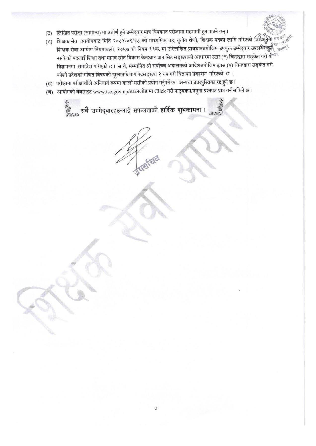 माध्यमिक तह, तृतीय श्रेणी, शिक्षक पदको खुला प्रतियोगितात्मक परीक्षाको विज्ञापन खुल्यो