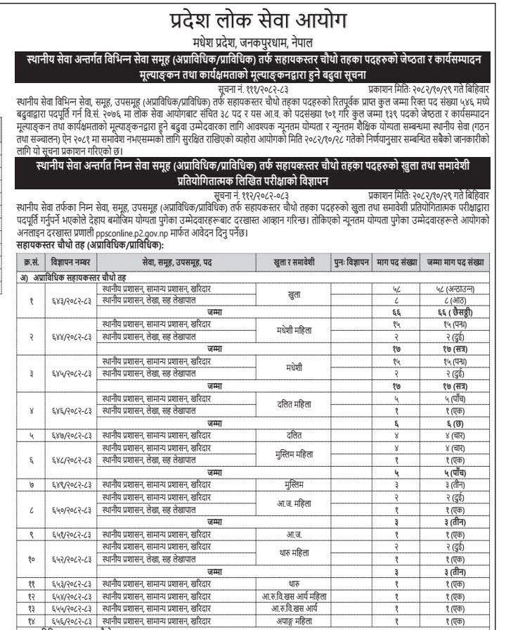 मधेश प्रदेश लोक सेवा आयोगद्वारा सहायक चौथो तह अप्राविधिक/प्राविधिकको विज्ञापन आह्वान (पूर्ण विवरणसहित)